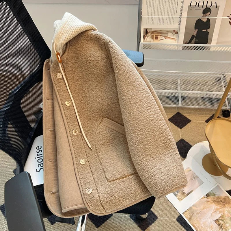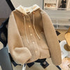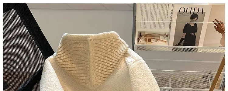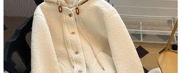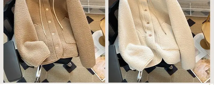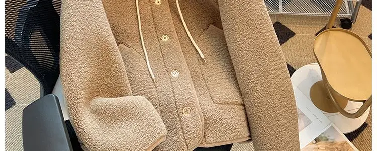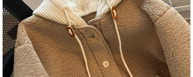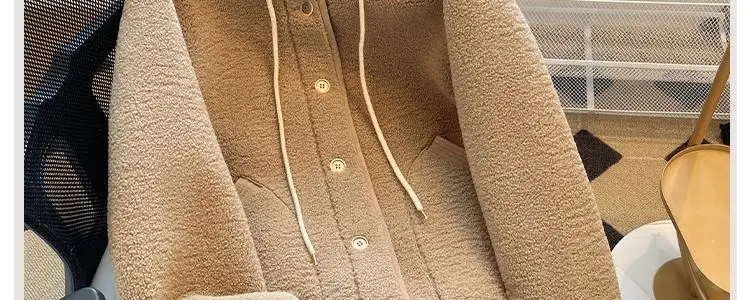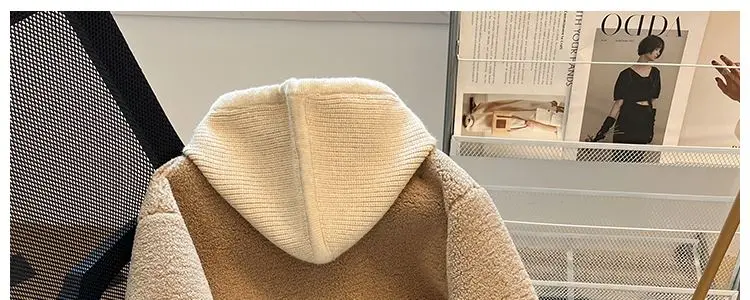 Oversized Hooded Lamb Wool Coat for Women & Loose Fit, Korean Style